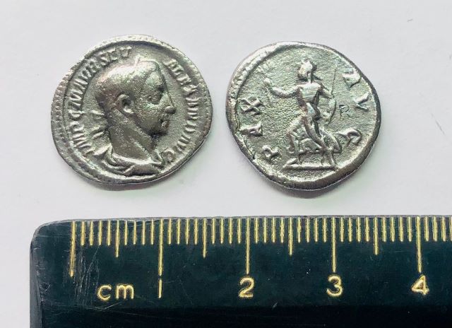 Roman Denarius of Severus Alexander 226ADObverse reads IMP CM AVR SEV ALEXAND AVG head facing rightReverse reads PAX AVG showing PAX seated leftA beautiful coin