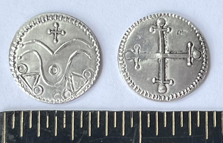 Harald "Bluetooth" Gormsson was a king of Denmark and parts of Norway during the 10th century (circa 958–986 CE).As you can see his silver coin just featured designs on both the obverse and reverse.