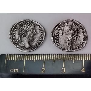 Commemorative Denarius, featuring Marcus Aurelius and Antoninus Pius