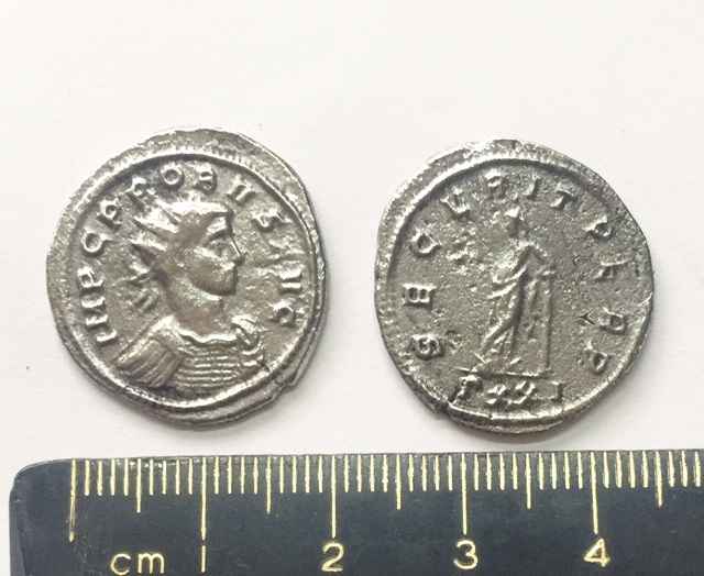 This coin is in excellent condition. The obverse shows the emperor with the legend IMP C PROBUS AVG. The reverse shows Security standing left, leaning on a column with the legend SECURIT PERP. It is similar to Sear 3368.
