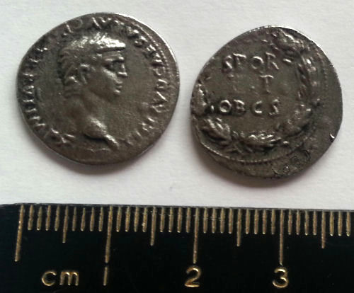 Roman Denarius of Claudius AD 41-54Laureate Head facing right. Blundered legend but should read TI CLAVD CAESAR AVG PM TR VIIII IMPThe reverse reads SPQR / P P/ OBCS in three lines within oak wreath.