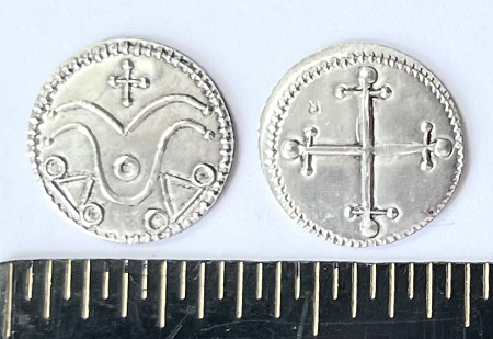 Harald "Bluetooth" Gormsson was a king of Denmark and parts of Norway during the 10th century (circa 958–986 CE).As you can see his silver coin just featured designs on both the obverse and reverse.